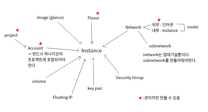 - Floating IP → 인스턴스를 외부에 노출시키는 역할을 한다.