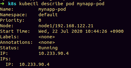 - pod object의 이름은 mynapp-pod이고, 하나의 컨테이너를 가지고 있다.