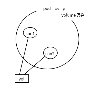 - 같은 pod의 컨테이너는 네트워크를 공유하고 볼륨도 공유할 수 있다.